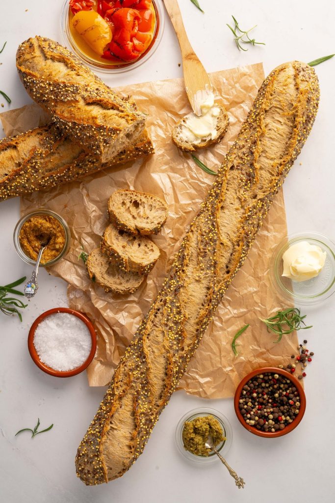 Tag en knasende bid af et stykke smagfuldt bagværk med vores autentiske flerkorns baguette, en ægte favorit på div. “sandwich-steder”.